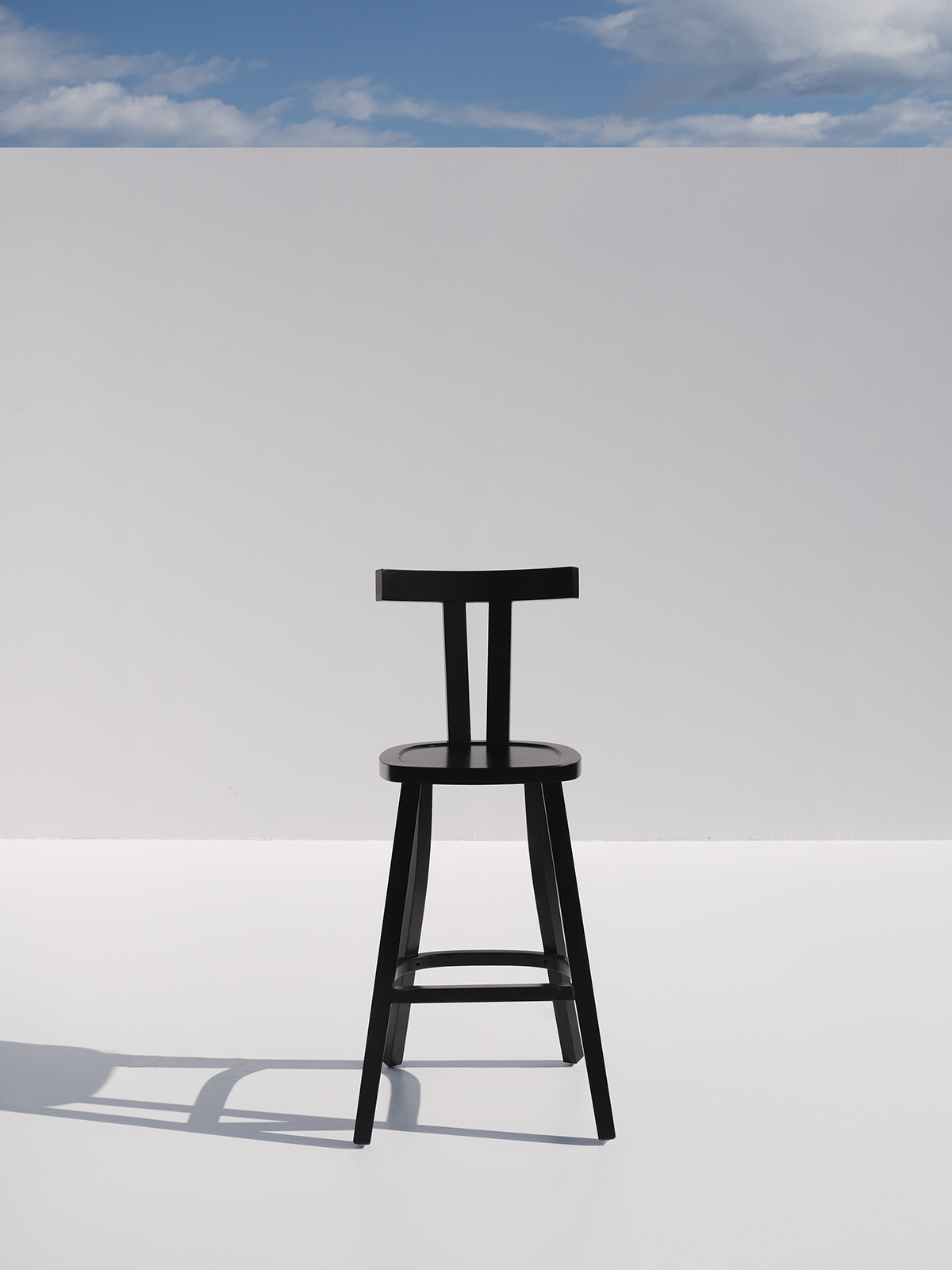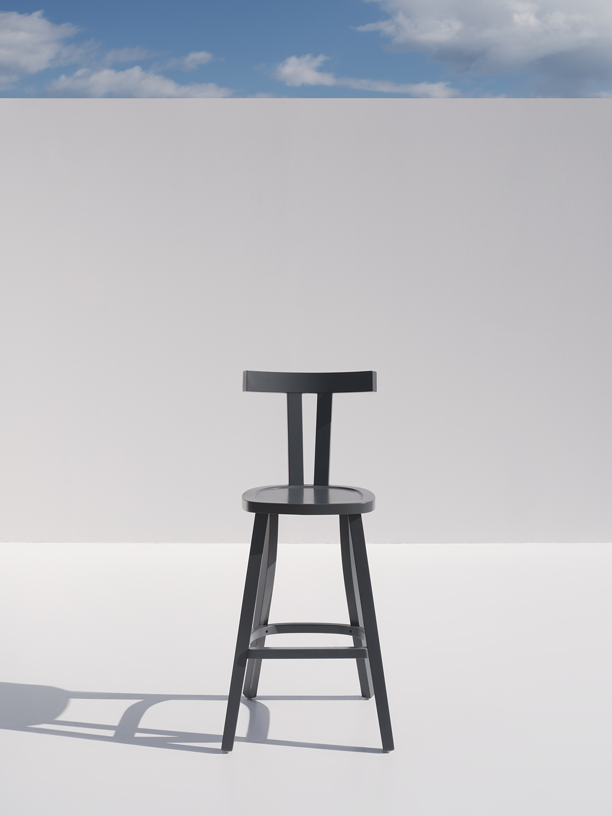 Minimalist wooden bar chair featuring clean lines and T-shaped backrest.
