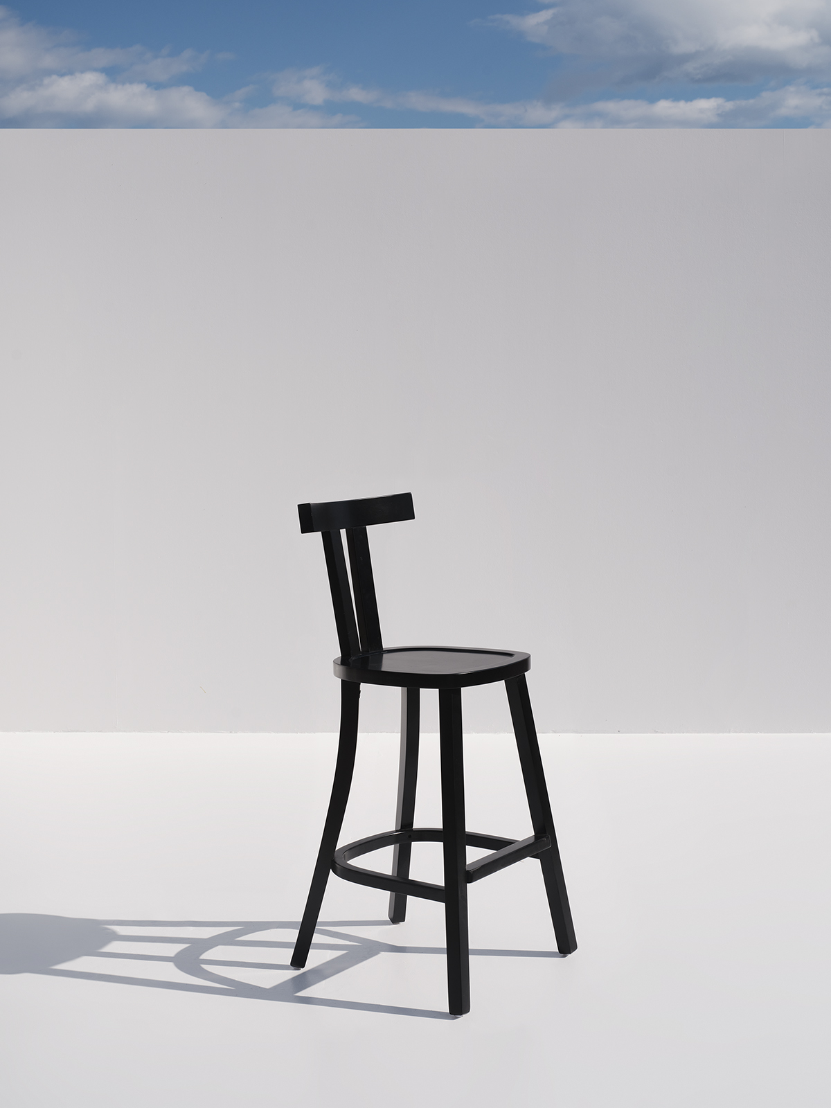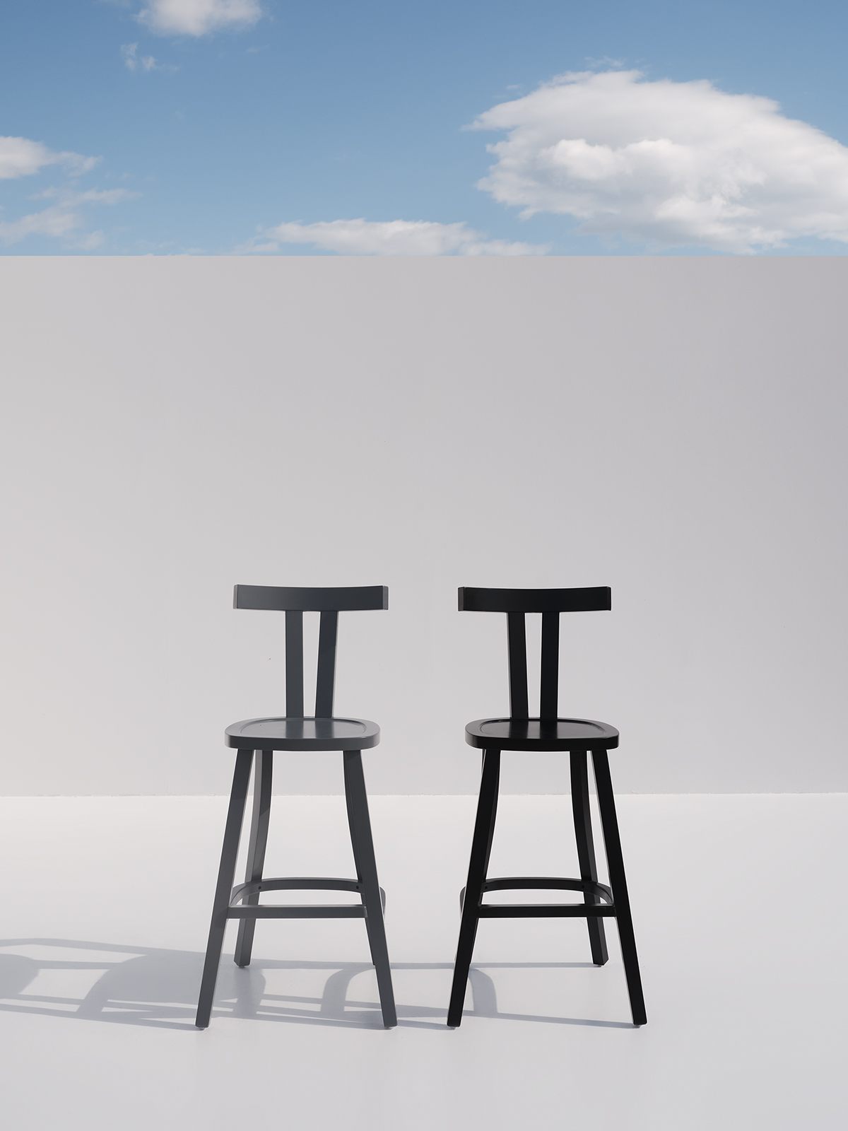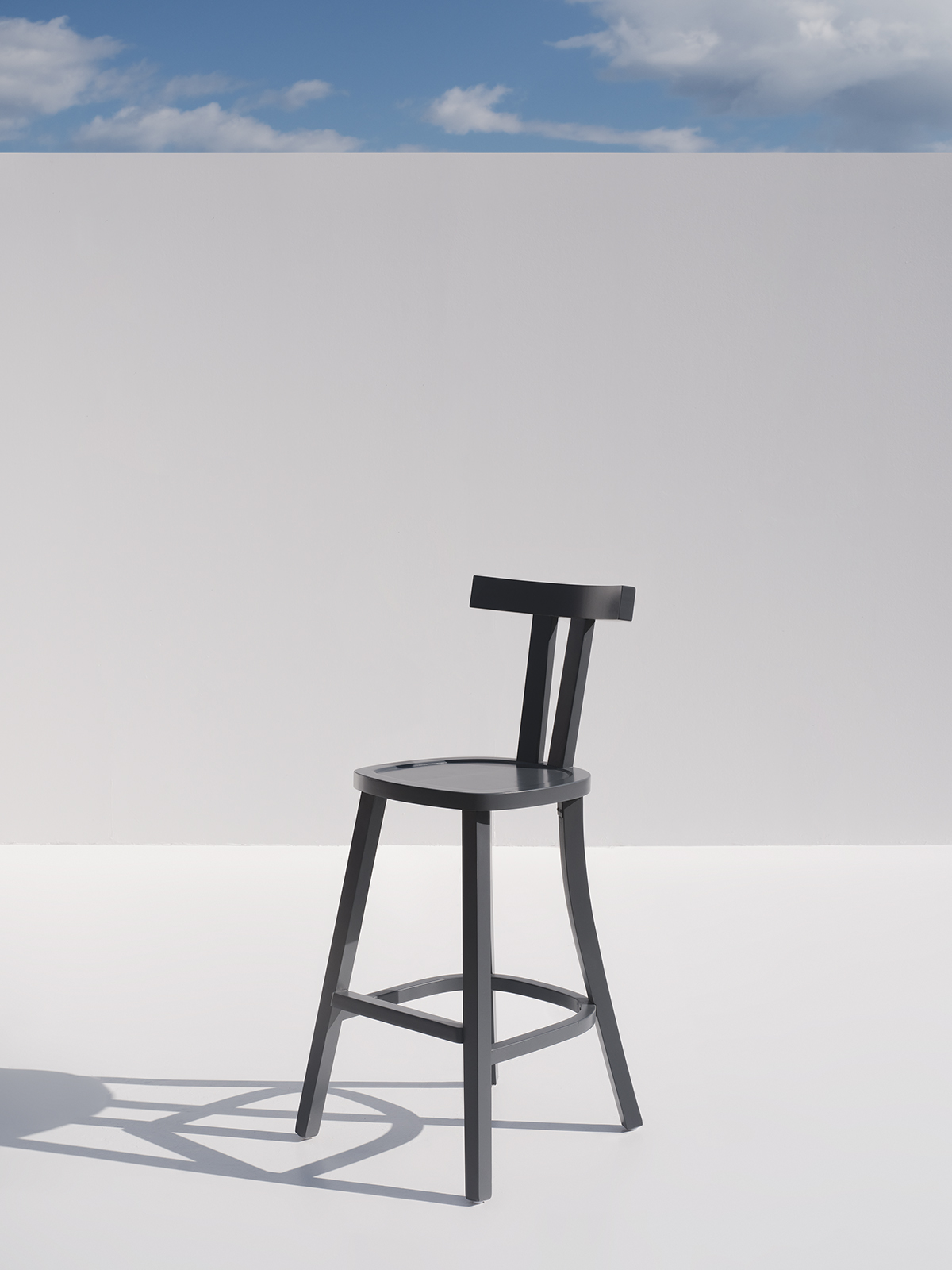 Minimalist wooden bar chair featuring clean lines and T-shaped backrest.