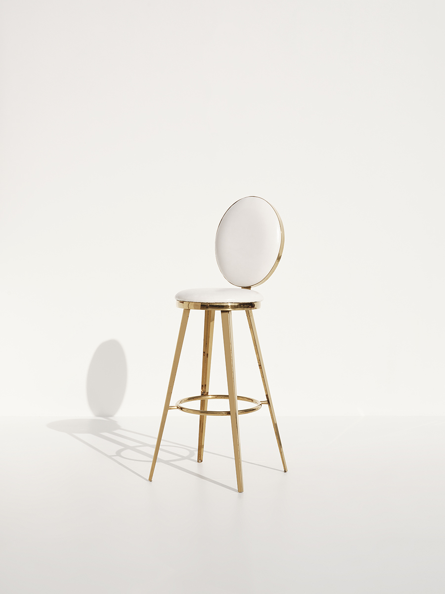Gold Stainless Steel Barchair, Removable White PU cushion back & seat