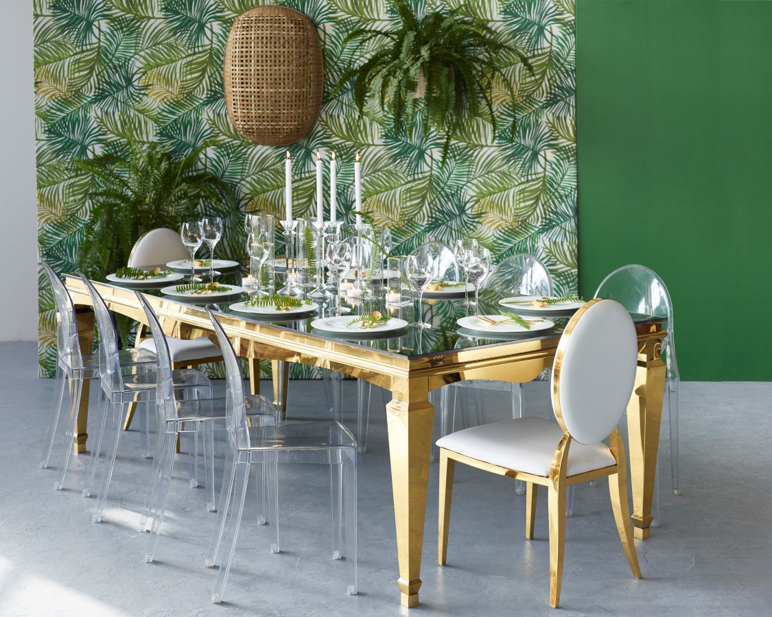 Gold Steel Dining Chair, With White Leather Cushion (Back & Seat)