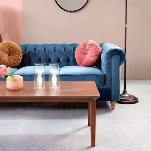 3seat Blue Velvet Chesterfield Sofa With Wooden Legs